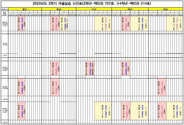 - 다음글2024년 2학기 [4학년] "9월 10일 화요일" ""13:00~14:00"" 자율실습 추가 신청(마감) 24.09.05